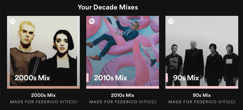 В Spotify реализованы персонализированные подборки по десятилетиям. Пользователь может выбрать эпоху, а система собирает треки с учётом индивидуальных преподчтений. Такой паттерн близок к механике выбора «Музыки будущего» — помогает пользователю исследовать незнакомый контент через знакомую структуру времени.
